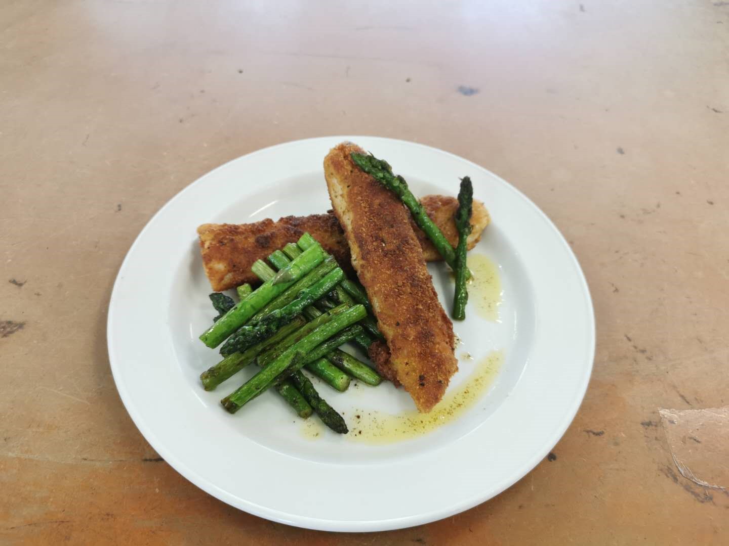 Shallow Fried Salmon and Butter Roasted Asparagus with Citrus Reduction by Libby Draney.