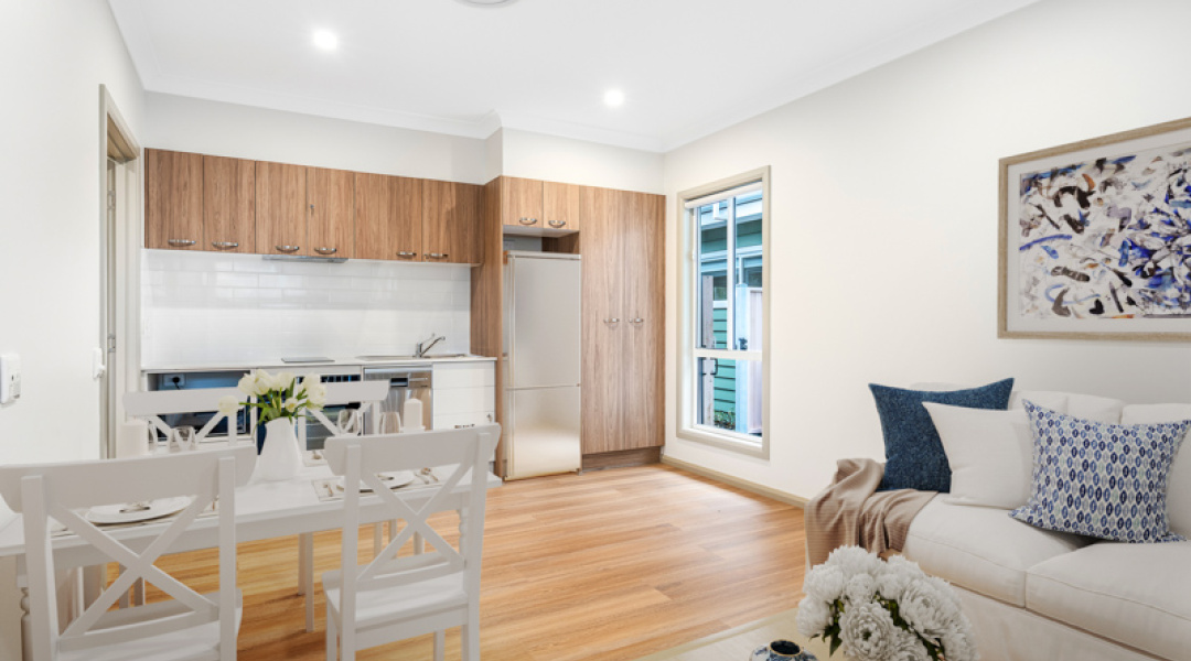 The open-plan living area includes an open plan kitchen, dining, and lounge spaces, creating a bright and inviting atmosphere that promotes both independence and connection. This thoughtfully designed home accommodates diverse living preferences while nurturing a strong sense of community and comfort.